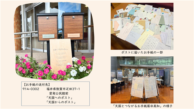 集まった手紙は「天国とつながるお手紙展」として全国を巡回しています。「天国とつながるポスト」が、遺された人それぞれの想いを大切にし、互いに支え合える社会を実現するきっかけになることを願っています。